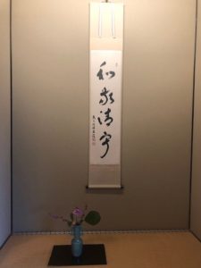 2021年3月30日 / 最終更新日 : 2021年5月17日 numata 茶のこころ 和敬清寂 <利休の茶のこころⅠ> ・千利休の唱えた「和敬清寂」(利休四規) ・亭主、客人の茶を通してこころを通わす ・本日は利休忌、肥後細川庭園にて茶の稽古でのお軸です