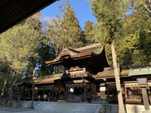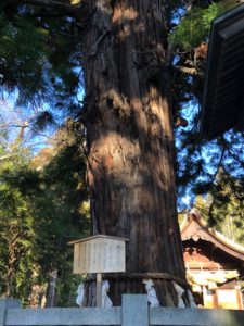 ・鳥居の正面には御神木「根入りの杉」(樹齢八百年)