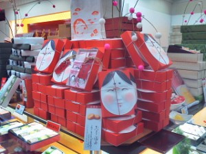 年の初めはやっぱり和菓子がいいですよね、クリスマスはお客様の数゛か少なかった和菓子売り場も、年が明けると凄い人ーーーー!やっぱり正月らしさを感じます。正月・年賀の菓子のディスプレイは煌びやかなものが多いです、圧倒的に紅白を使ったものが多いですが、縁起をかついだ七福神もキャッチとして使われています!このお店も毎回素敵なディスプレイで目を引きます 😀