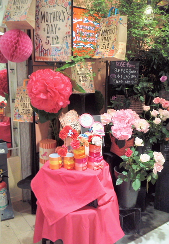 5/12は母の日!何処の百貨店もイベント目白押しとなっていますが、やっぱり母の日と来ると「フラワー関連」がいつの時代も人気!毎年この時期、鮮度ある展開をしている青フラですが、今年も例年通りこんな可愛く展開!母の日=ピンクは永遠なんでしょうかね~ 😀