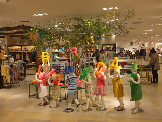 梅田大丸です!大阪出張の時は必ずチェックしてます 😀 今回のこの子供用品売り場のフロアVP、可愛く出来てます!!何がって?そんなにお金かけてない(と思いますが・・)子供マネキンの並びとポーズだけで、これだけ表情が出ることにパチパチです!極めつけは後ろのグリーンとアルファベット風船ですかね?!こういうのこそ、絵心があるって感じですね 😉
