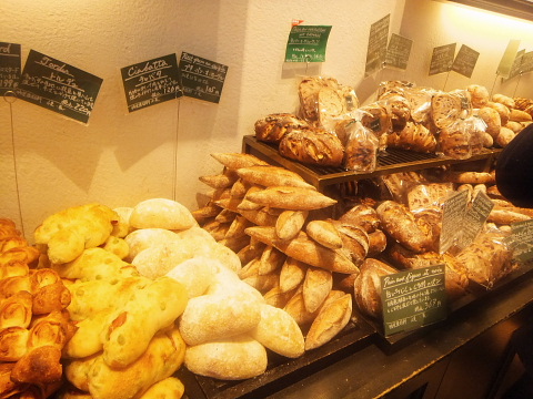 焼き立てパンの好い香りは食欲をそそるものですが、陳列ひとつで「美味しそう!」と感じる見せ方は沢山あります 😀 特に生鮮、野菜などは海外の陳列方法はとてもきれい!まるで芸術作品のように積まれた野菜は、とるのがもったいないほどです 😉 このパン屋さんはとても有名ですが、きれいに積まれたパンの陳列は、美味しそうに見えるし、高級感も出て、どうせ買うならこんなパン屋さんで買いたいですよね!お手本にしたいですね 😮