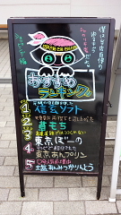 ちょっと前までは、POPの重要性なんて、あまり言われなかったののが、最近ではどこでも「POPの重要性」が花盛りです!だから店の前では黒板に手書きPOP、店内でも顔写真つきのPOPといたるところでPOPで氾濫し始めてきました!いいことです 😉 でPOP=文字となっている店と、なんらかのビジュアルをプラスしているPOPとありますが、やっぱりイラストなどに見られるビジュアルは大事。注目度は高まります。このSAも、ユニークなビジュアルを+したことで、アイキャッチ効果、抜群でした 😯