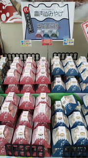 世界遺産に登録されたことで、富士山関連のお土産種類が莫大に増えています!富士というば、というほど、図案イメージが分かり易く、お土産になり易い要素をもっているからか、さの種類の多さは極めつけです 😯 でも分かり易いというのは、とても大事で、このお土産も色別に形をメイキングし作っている。分かり易くていいですね 😛