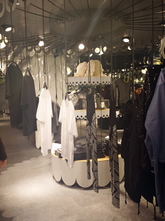 9月にオープンし話題となっている関東初出店となるH&M傘下ブランドMONKI。ブランドキャラクターの“モンキ”がプリントされたアパレルなど、意外とベーシックな商品もありターゲット層もひろそうです!店内はミステリアスな海底の世界をイメージさせるインテリアで、なかなか面白い!棚上ディスプレイ方法も簡単な棒につり下げるだけで形が作れるしかけで、こういうちょっとしたやり方は参考になります 😉