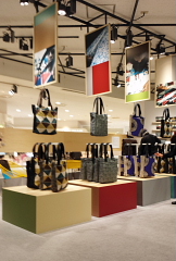 マルニの協力のもと、アーカイブプリントを用いたバッグやポーチがケニアで作られていたものがフェア開催されていました