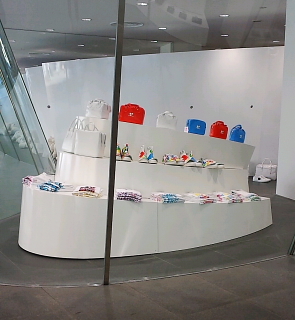 言わずと知れた骨董通りのコム・デ・ギャルソン、最近このあたりはどんどん新しい店舗が増えていて、外国人の数も多い!!コムデギャルソンというと、以前のイメージは白・黒を中心としたモノ・トーンでしたが、写真のように随分進化しています。もともとの白い空間にこういったビビットカラーが入るととても目を引きます。長く愛されるブランドというのは、やっぱりブレナイ。。さすがです 😉