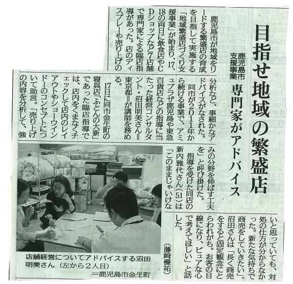 2014年10月1日 / 最終更新日時 : 2014年9月28日 numata VMDセミナー 目指せ地域の繁盛店 第四回目になった、鹿児島市地域繁盛店頭づくり支援事業が今年も始まりました♪9月21日の南日本新聞で取り上げられました♪ 共有:Facebook で共有するにはクリックしてください (新しいウィンドウで開きます)クリックして Twitter で共有 (新しいウィンドウで開きます)お問い合わせ無料これからVMDを取り入れたい!VMDの基礎を学びたい! 初心者の方から応用まで、お気軽にお問い合わせください。 TEL.03-5954-1357 お問い合わせフォームVMDとは