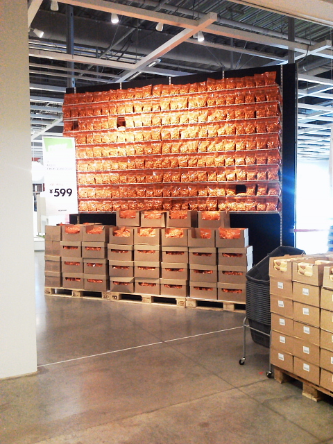 店頭から見たときの売場の見え方はサインスペースの印象も大きく関わるものです 🙂 よくその場所はディスプレイをしたりPOPを表記したりと各店舗工夫をしますが、先日行ったIKEAでは天高を活かした迫力のある陳列をしていました!遠目で見ると「何だろう?」って思えるほどの迫力 IP陳列も十分なディスプレイ要素となる事例ですよね 🙄