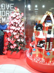 この百貨店では七夕のように、思いを短冊オーナメントに飾りディスプレイ。。私の前ではお父さんと子供が二人で思いをつづっていました。。。。