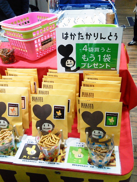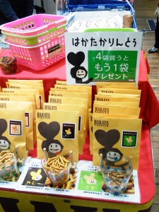 そろそろホワイトデーということで、お菓子売り場は「お返しギフト」が大賑わい?!最近はロス削減で試食もままならないご時世ですが、この試食のかりん糖屋さんはにぎわってました! 🙂 ぱっと見たとき「目立つ!!」何でだろうと良く見ると、試食の器の色とパッケージの色をそろえてたんですね!結構な種類のバリエーションを楽しく陳列! 😮 これは催事ですが、こうやってしっかり商品を見せてあげると、商品の良さが際立ちますね!!