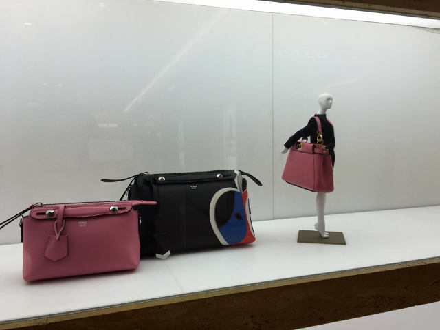 ストラップ ユーを想起させるディスプレイ!!どんなデザインのバッグにも簡単に取り付けられるストラップはコーディネートやシーンに応じて様々な楽しみ方ができますよね!このミニチュアマネキンとバッグのバランスもカワイイ