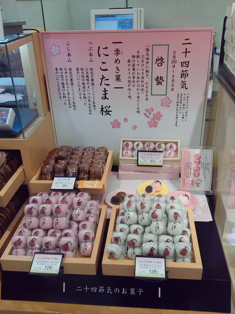 桜をテーマに催しものを展開する時期!ディスプレイはもとより桜関連の商材が季節のお便りを感じさせてくれます 😮 アパレルで桜を感じるのはなかなか難しいモノがありますが、菓子は腕の見せどころ!桜餅からはじまり色々なお菓子勢ぞろい!ということで、春らしさを感じる販促ツールの使い方と「手に取りやすい」陳列を見つけました!!