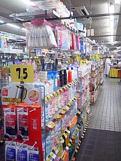 昨日に引き続きのお店!レトロ雑貨食品店 😮 の不思議なサインスペースの使い方!確かに島什器展開の場合、高さが1350mmぐらいにおさえるため、上部があいてしまいます。でこの店の場合、上場1800mm前後にルーバーを設置しフック陳列できるようにしている!まぁ取れない高さではなかったけど、こんな展開見たことない!! 🙄 面白いのが、その上をストックスペースにしているとこ!古着やさん等で造作的衣意匠で作る場合はいぜんにもあったけど、うーん不思議な店舗でした 😯
