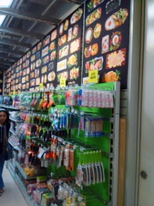 お弁当関連商材が、どこのショップでも拡大されています!時代の流れですよね!かくいう私は外メシ派で、お弁当を作ってる人、ホント尊敬しちゃいます 🙂 弁当関連売り場で、ハンズはサインスペースに「お弁当のグラフィック」を面白く使ってます!遠目で見ると「何かな?!」って思うんだけどカラフルなお弁当の写真がズらー!!こういう展開も面白いですよね 😮
