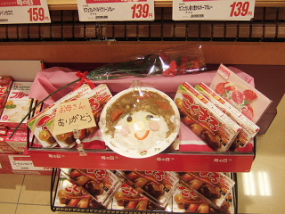 母の日も終わり、最終日はギフトの盛り上がりは予想以上のようでした 😀 やっぱり家族の絆ですかね?!好い事です!!そんな中SMでこんな可愛いカレーの紹介がありました 🙂 手作りっぽく「家庭的」な雰囲気が出て思わずにこっとしちゃいますよね!こういう「ただ商品を並べるだけ」の陳列から「コト」の提案が大事です 😮