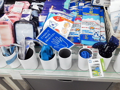 7月になりさすがに暑くなると、欲しくなってくるのがクール関連商材!去年もかなり売れましたが今年も売れているらしい 😀 そこで登場かるのが体感してみないと分からない急速冷感の体験!様々な店舗でも実施しているけど、ハンズではこんなバリエーションで展開!意外に難しいサンプル陳列もこういったツールでまとめて展開すると、上手く什器におさまって整理されて見えますね 😮