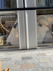 恐らく近くで見ると、このwindowに何をデザインしているかわからないのではないでしょうか、遠目で引いてみると巨大バックのデフォルメしたオブジェが・・・