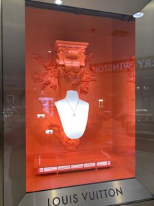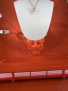 背景一面の赤色で覆われた中に立体的に浮き出す顔のシルエット。怖いぐらいの存在感ですが、赤壁面の素材感と背景のクオリティが高くないと、安物のディスプレイになってしまいます。シンプルなデザインこそ素材をレベル高くしないと良悪がはっきり見えてしまうものです。