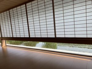 まだ行ったことがなかった京都迎賓館に行ってきました。京都迎賓館の建設は、2002年から始まり、完成したのは2005年です。開館式は2005年4月17日に行われました。設計・監修には、多くの専門家や職人が関わりました。建築の設計には、日本の伝統的な建築技術と現代的な要素を融合させるために、建築家やデザイナー、伝統工芸の職人たちが協力しました。特に、京都を代表する伝統技術を使って建物を建設するため、多くの地元の職人が関わっていたといわれています。私にとっての一番の見どころは庭園。池を中心とした「池泉回遊式庭園」で、四季折々の風景を楽しむことができます。池に架かる橋や、周囲の植物、石組みなどが調和しており、ゆったりと散策することができます。